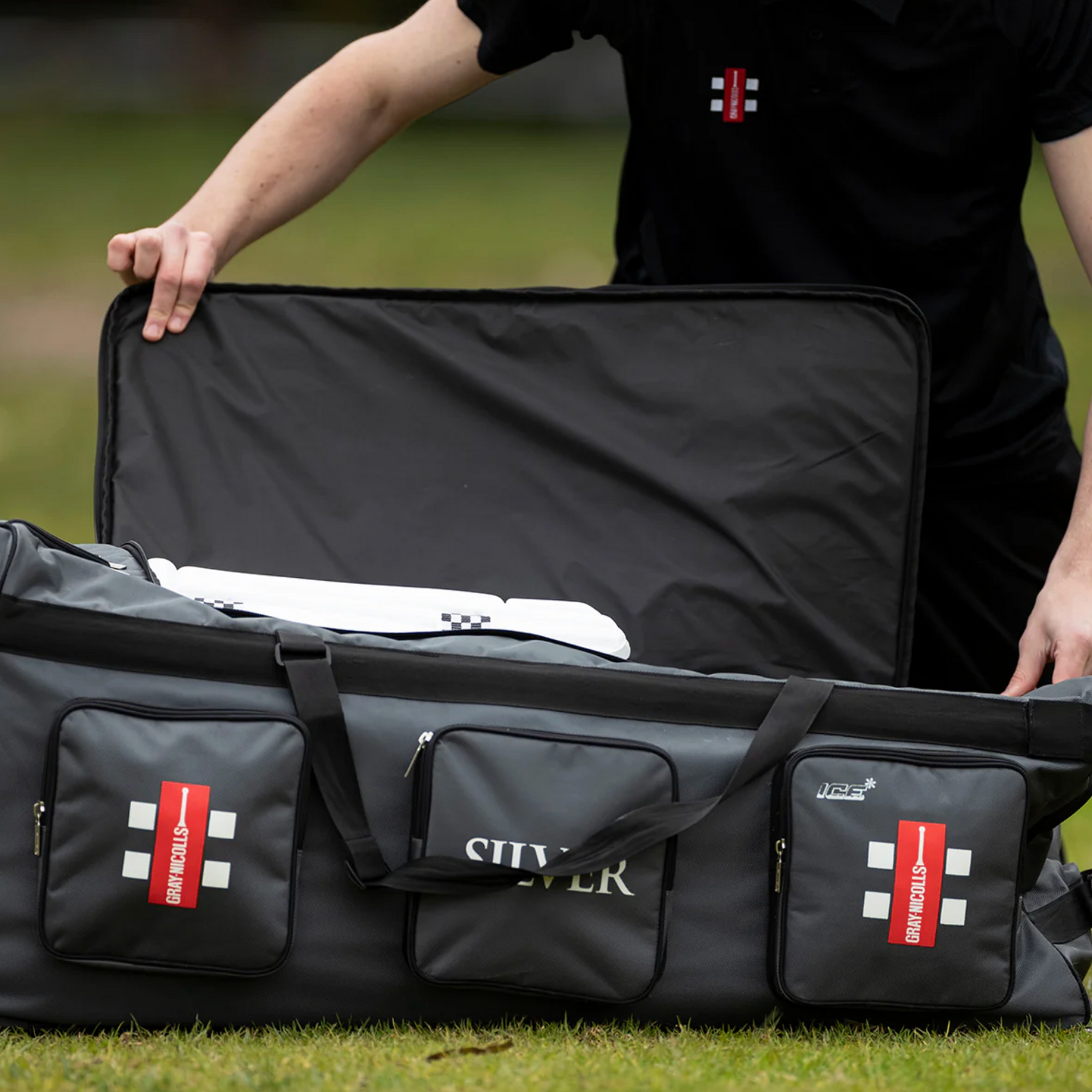 The Gray Nicolls Silver Wheel Bag is a premium traditional cricket wheel bag designed for players needing maximum storage and easy mobility.