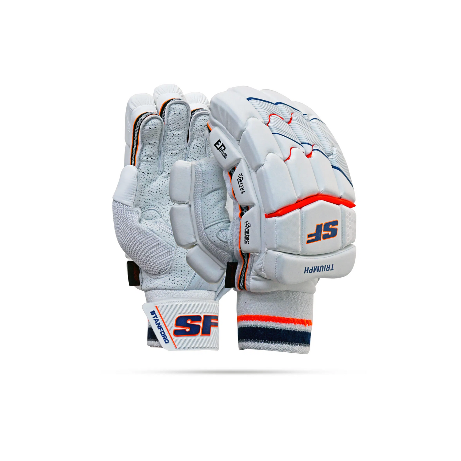 The SF Triumph Batting Gloves are a premium, lightweight choice in the SF range, designed for cricketers seeking superior comfort, protection, and control. The palm is crafted from high-quality Pittards leather for excellent grip and durability, while the polyurethane used in finger protection is imported to ensure reliable impact absorption.