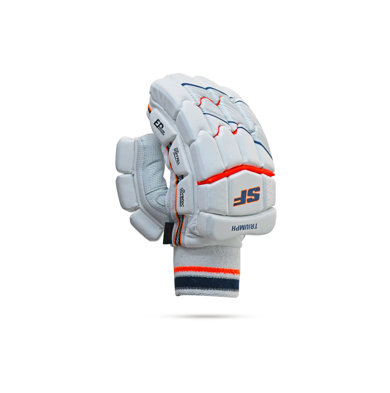 The SF Triumph Batting Gloves are a premium, lightweight choice in the SF range, designed for cricketers seeking superior comfort, protection, and control. The palm is crafted from high-quality Pittards leather for excellent grip and durability, while the polyurethane used in finger protection is imported to ensure reliable impact absorption.